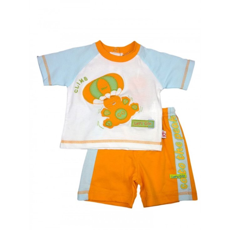 Complete 2pcs shirt shorts baby boy half sleeve Pastel white orange 3 - 6 m