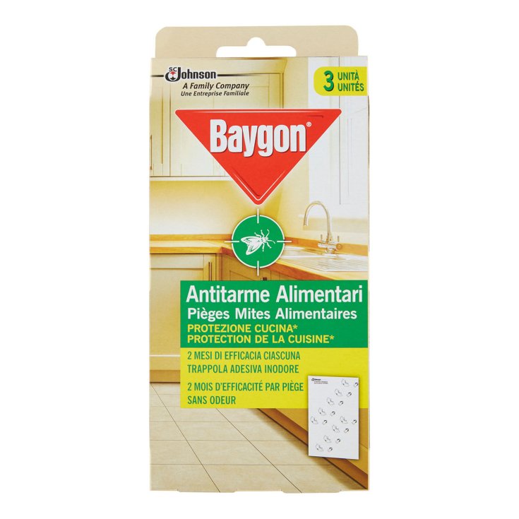 Baygon® Food Moths Protection Cooks a pheromone that attracts the male of food moths and traps him thanks to the glue.
