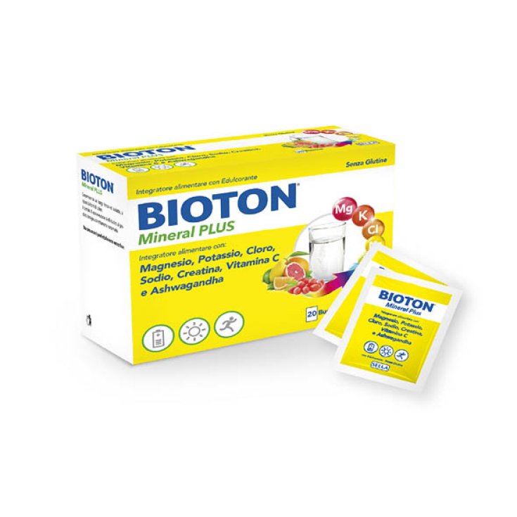 Bioton Mineral Plus is a food supplement based on mineral salts enriched with Ashwagandha, Creatine and Vitamin C. Magnesium and Potassium salts are useful for integrating the hydro-saline losses due to excessive sweating and to support muscle function. Vitamin C contributes to the reduction of tiredness and fatigue. Ashwagandha, also called Indian Ginseng, has tonic-adaptogenic properties that improve the body's adaptation in case of both physical and mental fatigue. The reconstituted formula allows to obtain a fresh and thirst-quenching hypotonic solution, recommended for adults and sportsmen to drink both during and after activity, useful for replenishing the hydrosaline losses due to excessive sweating and prolonged efforts, especially in the hottest periods of 'year.