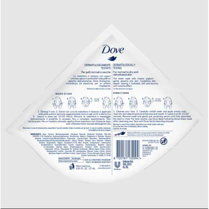 - Facial hydration Introducing Dove Face Mask in Moisturizing Fabric. Enriched with yogurt and ceramides, this mask moisturizes the skin of the face, providing intense nourishment.