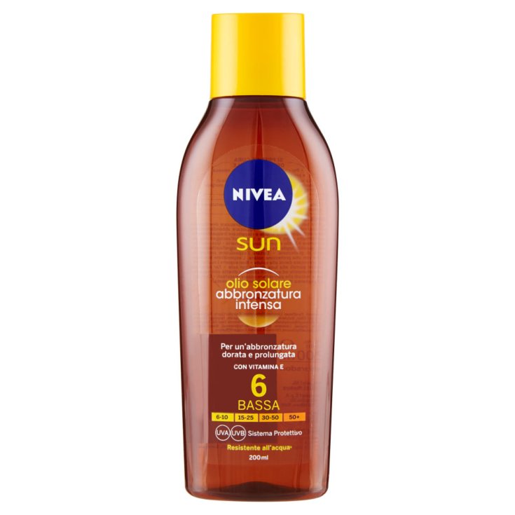 NIVEA SUN Intense Tan Sun Oil gives your skin a beautiful golden tan. ACTION: Its formula enriched with Jojoba oil moisturizes the skin and makes it soft and smooth as silk, giving it a luminous, prolonged and uniform tan. DIRECTIONS FOR USE: This product is not a sunscreen, sunscreen starts from FP6 Avoid direct contact with hard surfaces and fabrics that could be stained. Dermatologically proven skin compatibility.