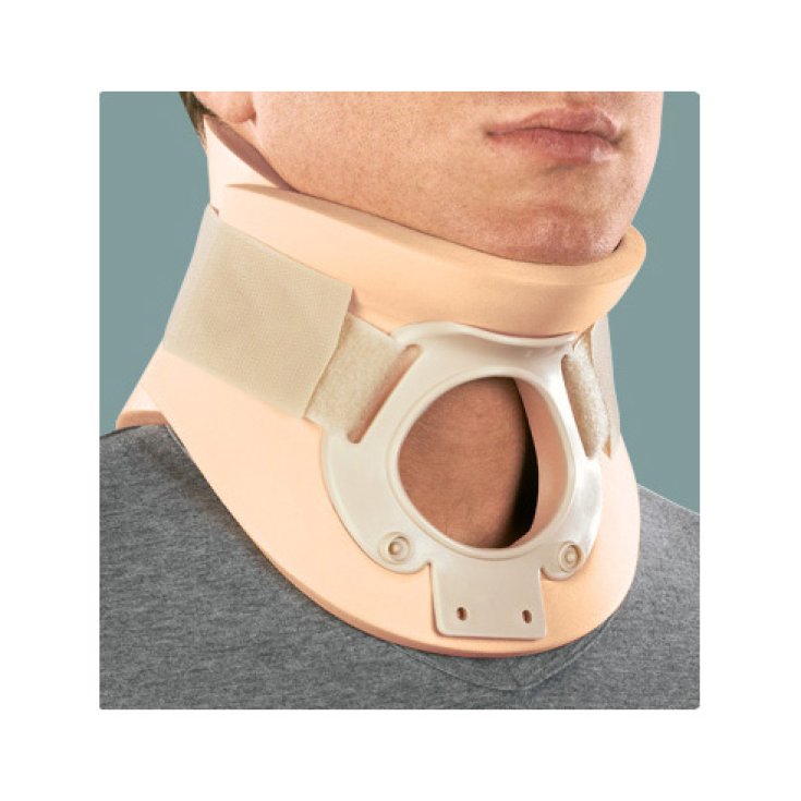 It is an effective medical device that ensures excellent immobilization of the neck, minimizing any discomfort. The structure consists of two reinforced rigid shells, to be closed with adjustable velcro, which make application particularly easy, even in people lying down. The non-toxic and latex-free material, the anatomical shape that accommodates the chin and rests gently on the sternum and the ventilation holes make the orthosis as comfortable as possible. The tracheal hole is present anteriorly.