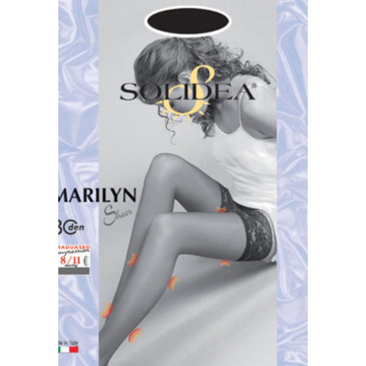 Socks 30 Denari. Smooth knit. Veiled and sensual, it combines the elegance of a seductive lace flounce with the well-being of graduated compression 8/11 mmHg. With anatomic anti-stress insole.